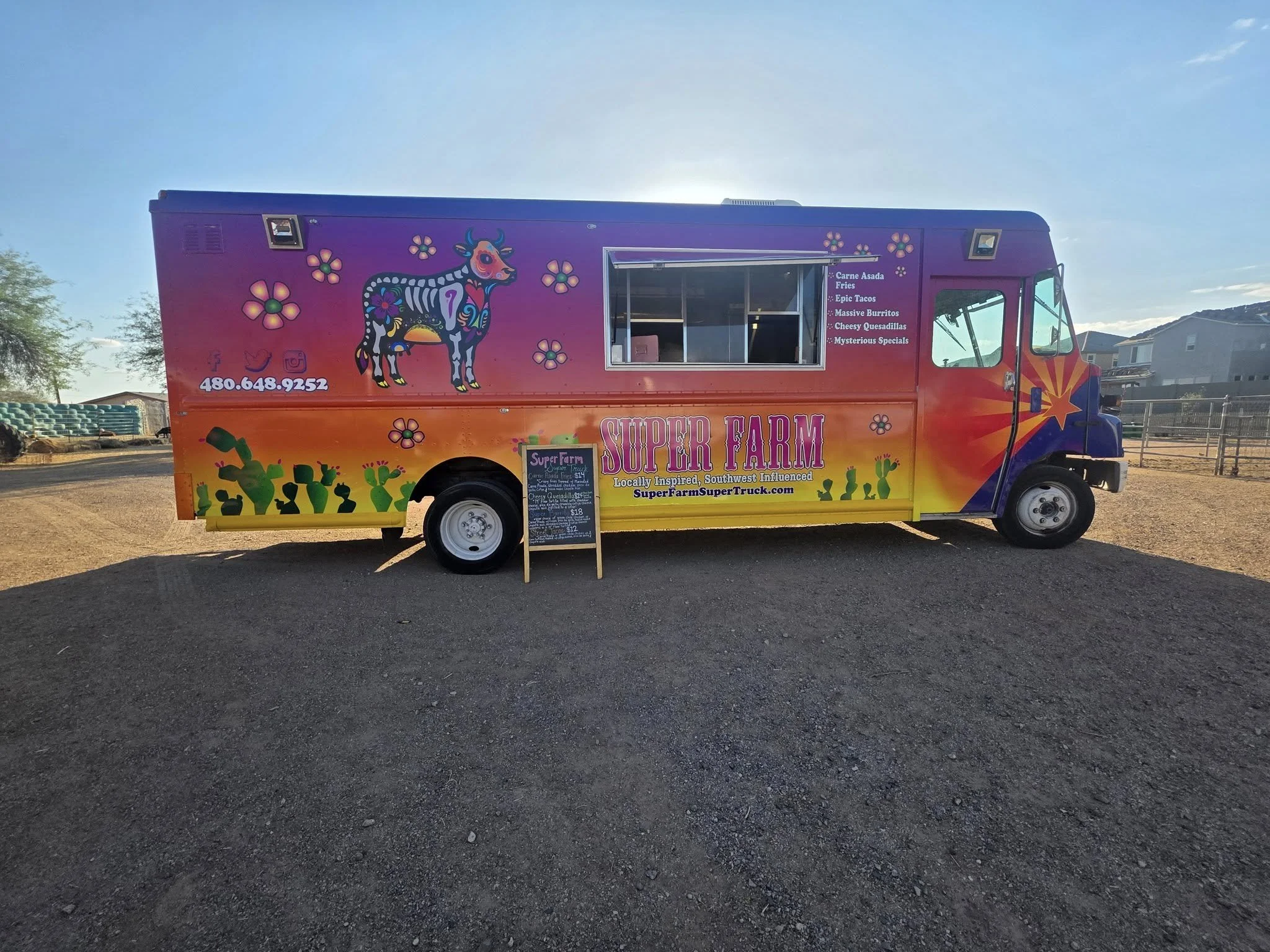 SuperFarm SuperTruck is bringing bold Southwestern flavor to the festival! Dive into Not Your Basic Tacos, loaded Carne Asada Fries, cheesy Clucking Queso Quesadillas, and their signature El Bigo SuperBurrito. Don’t miss the Elote Cup, crispy fries, and fried churros with ice cream for dessert – farm-fresh flavor meets foodie fun!