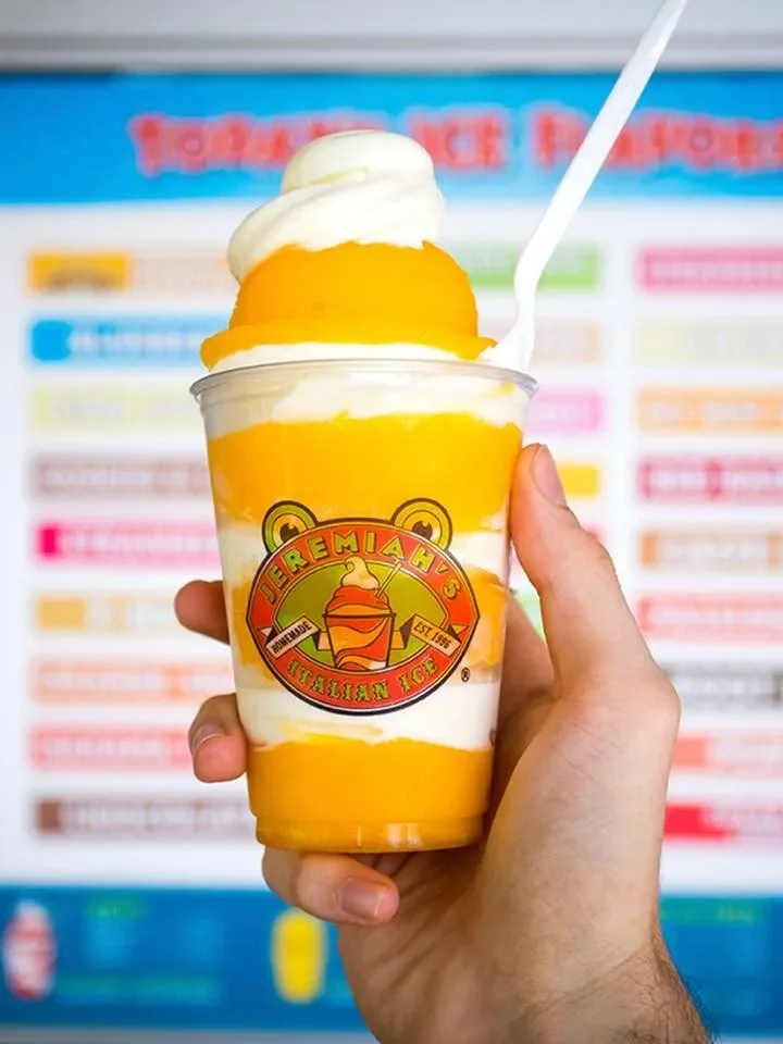 Cool off with a swirl of happiness from Jeremiah’s Italian Ice! Choose from refreshing fruity ices or creamy gelati combos — the ultimate chill treat!